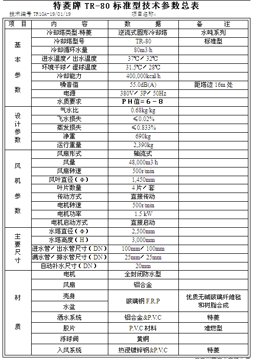 特菱TR-80逆流圓形冷卻塔是特菱通過長期對冷卻塔設備的設計、生產、使用、維護而積累的豐富經驗,結合國內外先進的熱交換技術研發的設備。特菱針對中國的自然環境而設計,能減少冷水機組的能耗,節約能源,保證冷水機組的高效率運行,對冷卻塔的散熱系統、導風裝置、收水裝置、布水系統等進行整體優化設計面開發出的產品。